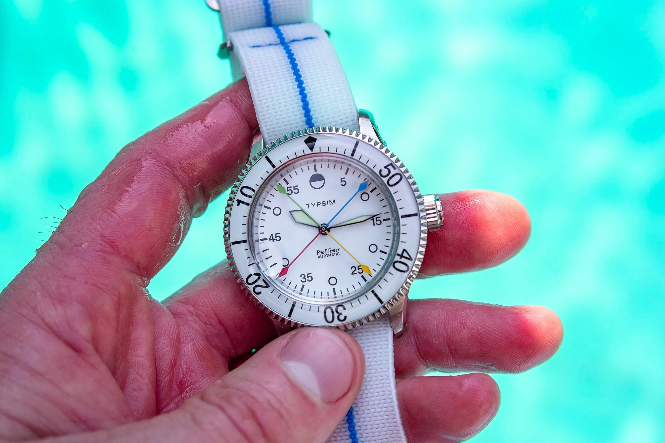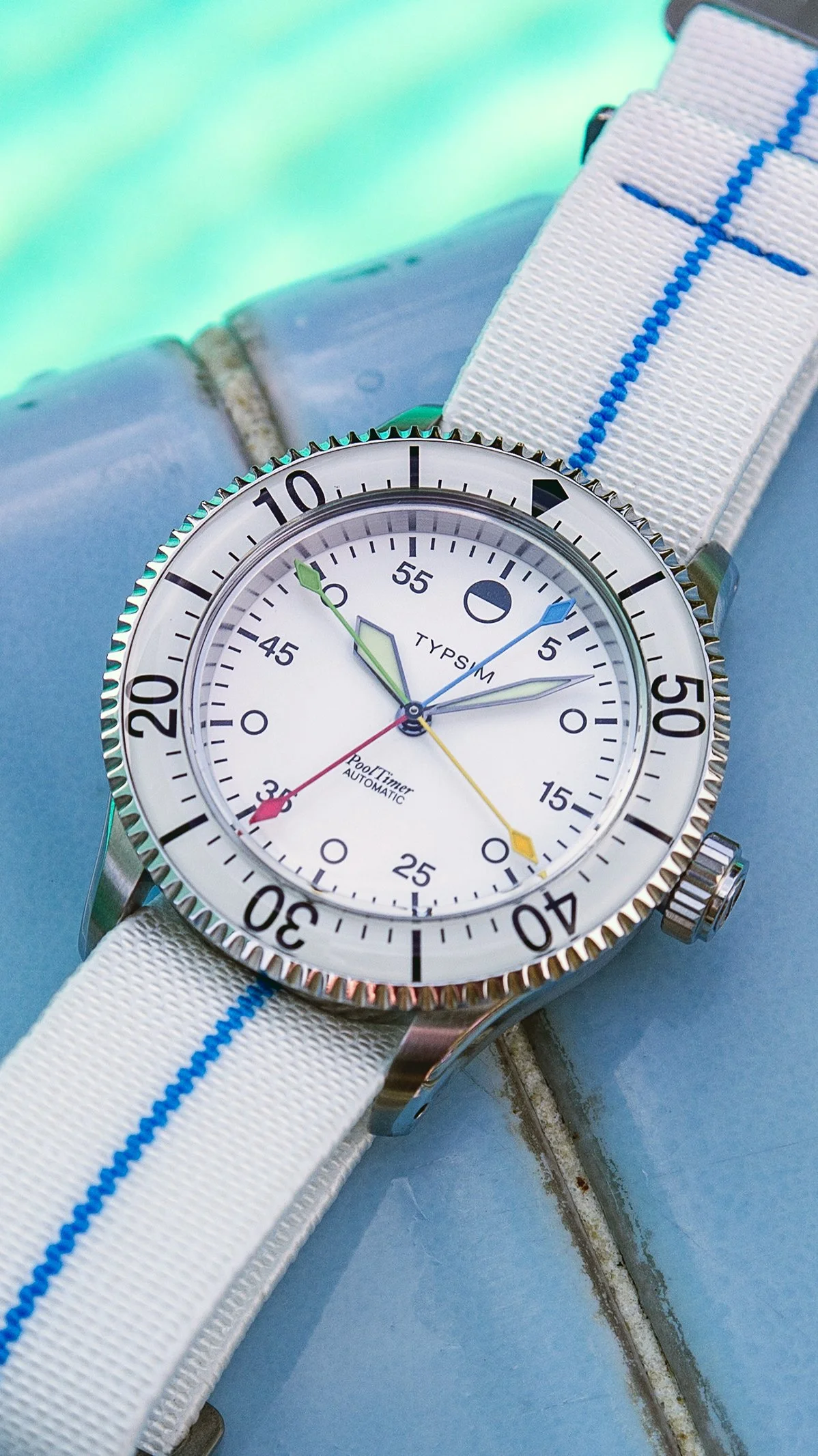 It’s a swimming pace clock designed for your wrist - the Typsim pooltimer takes advantage of an ingenious four handed second hand to facilitate easy timing without the need for chronograph pushers. Add to that a bidirectional countdown bezel and you’ve got the perfect partner for your swim workout.